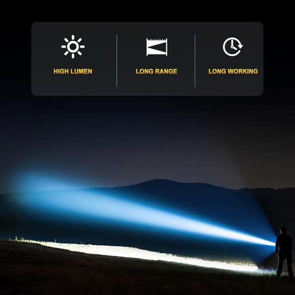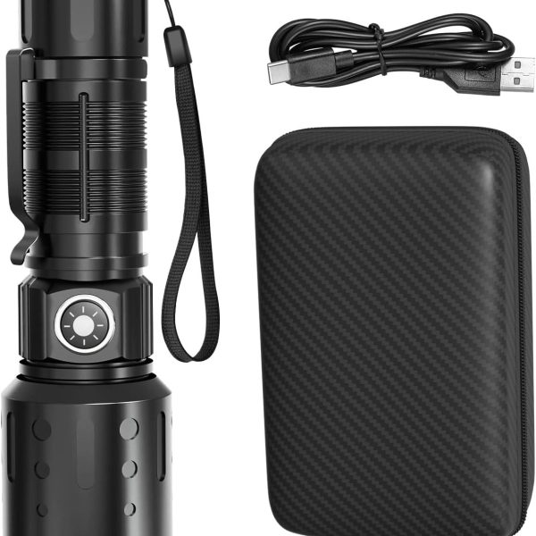 Super Bright Flashlight 5000.000 High Lumens, LED Rechargeable Flashlights Powered by Battery, Handheld Waterproof Tactical Flashlight-Zoomable 5 Modes-31H Runtime for Emergency Camping (Coffee)