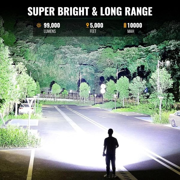 Rechargeable Spotlight, 99000 Lumens Super Bright Led Spotlights Flashlight with Cob Light & Foldable Tripod, 10000ɱAh Spot Lights Long Runtime, Handheld Spotlight for Hunting Boating Outdoor